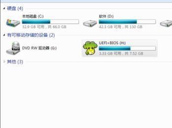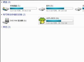 在U盘盘符上右键点击属性,然后左键单击硬件。