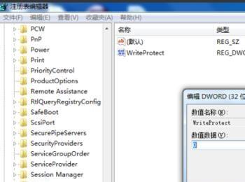 找到HKEY_LOCAL_MACHINE\SYSTEM\ControlSet002 \Control\StorageDevicePolicies,HKEY_LOCAL_MACHINE\SYSTEM\ControlSet001\Control\StorageDevicePolicies下是否有WriteProtect项,如果有将其值改为0,如果没有找到就忽略。