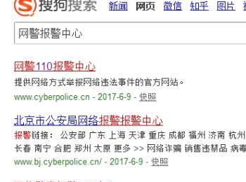 如果自己有需要求助网上警察却不知道联系方式的话可以打开搜狗浏览器。搜索网警报警中心,点击进入网站。