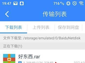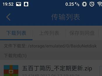 进入传输列表界面,等待压缩文件下载完成。
