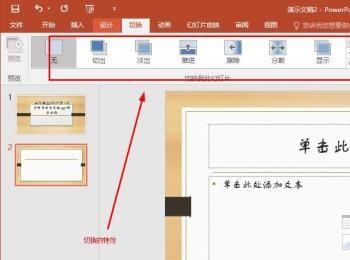 切换菜单中设置幻灯片出现效果。