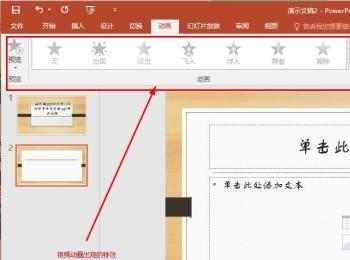 动画菜单中设置动画出现的效果。