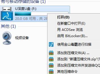 还有些U盘驱动器错误也会无法读取,这个时候用鼠标右键点击U盘。在出现的额选项点击“属性”