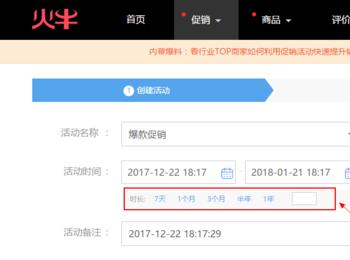 设置活动时间,可以通过点选活动开始和结束的时间设置活动时长;也可以通过活动时间下面推荐的活动时长,系统自动匹配活动开始和结束的时间,这里也可以自定义活动时长。