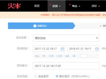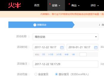 填写【活动备注】方便后续管理活动,也可以用系统推荐的时间做备注;选择参与活动范围,可以选择【全店宝贝】,也可以选择【部分宝贝】参加。一般建议使用【部分宝贝】参加活动,这样操作比较灵活。最后勾选【活动结束前短信提醒】,这样不会因为活动结束,造成跑单的情况。