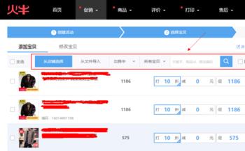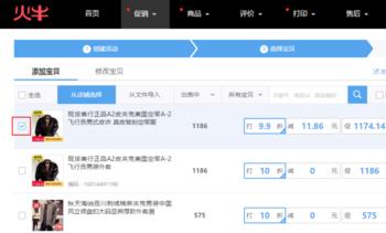 在选择宝贝页面可以通过系统推荐的方式进行宝贝的批量筛选,并在页面下方,选择参与活动的宝贝,是否要抹零。