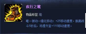 第二件装备可以选择做出“疾行之靴”,利用这件lol中移速最快的鞋子去支援各路,在下路打出超大优势的时候,和打野一起去其他路扩大整场游戏的优势;(装备属性:唯一被动—强化移动:+25移动速度。脱离战斗5秒后,将提升至+115移动速度)