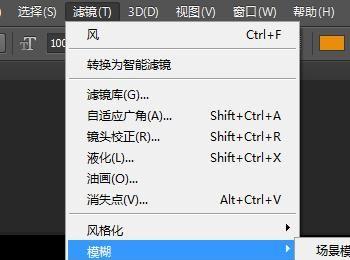 输入我们需要的文字后,在菜单里找到滤镜菜单,并在其子级菜单里找到模糊选项,点击模糊选项,在其下拉菜单里找到高斯模糊选项,如图所示: