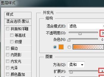 使用涂抹工具,在文字上涂抹得到我们需要的效果后,在该文字图层上添加外发光图层样式,设置参数如图所示: