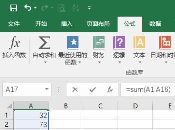 输入完公式以后按回车确认,然后我们就在黄色单元格中看到一个数值,这个数值就是上面16个单元格中的数值相加的总和。这就是一个公式的使用了