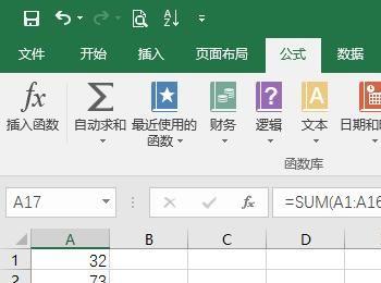 像图中的一串数字,我现在想知道他们相加的和并且把求和数放到A17单元格也就是那个黄颜色的单元格里