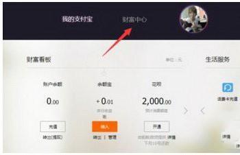 进入支付宝后台后,我们点击上方选项中的“财富中心”。