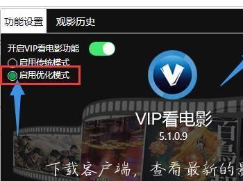 以上步骤之后,程序就安装好,如果可以在页面上看到多出来一个带V字形的图标,那就表示你已经安装好了。 点击安装好的图标,进行简单的设置,将模式设置成启用优化模式,右边的设置为自动启用vip看电影。