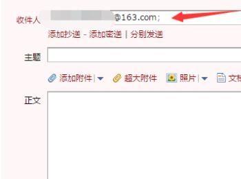 在收件人中输入163邮箱账号,用分号结尾,如图所示