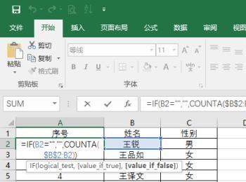 另外一种自动生成序号的公式 不仅能够根据内容自动生成序号,而且能够根据内容调整序号 在A2单元格输入公式 “ =IF(B2=””,””,COUNTA($B$2:B2)) ”