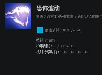恐怖波动是vs的主动debuff技能,能够降低敌方的护甲,并提供波动范围内的视野。