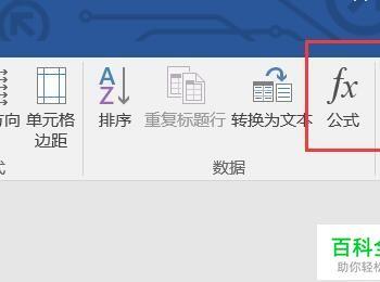 在表格工具下方,单击布局选项卡,在布局工具栏,数据组单击公式。