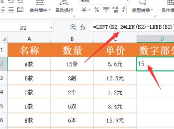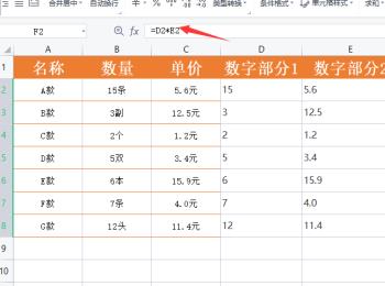 4. 第四步根据下图箭头所指,还可以通过公式分别计算出单元格中的数字部分。