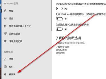 4. 第四步进入【隐私】页面后,根据下图箭头所指,点击左侧【麦克风】选项。