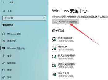5. 第五步在右侧页面中,根据下图箭头所指,点击【打开Windows安全中心】选项。