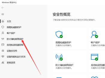 6. 第六步在弹出的窗口中,根据下图箭头所指,点击左侧【防火墙和网络保护】选项。