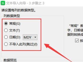 5. 第五步根据下图箭头所指,先按照实际情况设置列数据类型,接着点击【完成】选项。