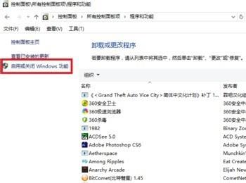 2. 然后找到程序与功能打开,进入页面后,点击左上方的“启用或关闭Windows功能”选项。