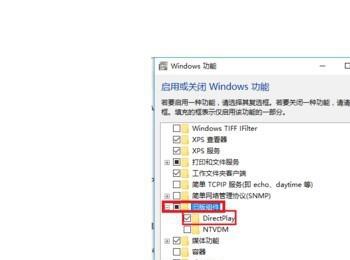 3. 在弹出的窗口中,点选上”旧版组件“,找到”DirectPlay"勾选上,点击确定。