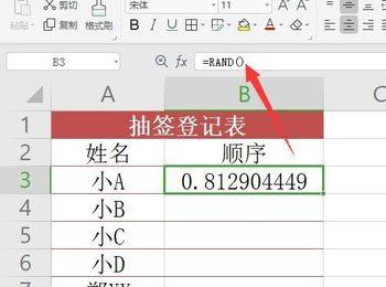 1. 首先第一步先打开电脑中的Excel文档,接着选中单元格,然后根据下图箭头所指,输入公式【=RAND()】即可生成随机数。