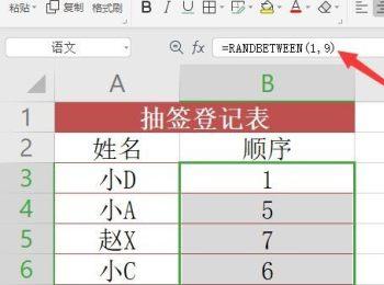 5. 第五步根据下图箭头所指,还可以通过公式【=RANBETWEEN(1,9)】生成指定范围内的随机数。