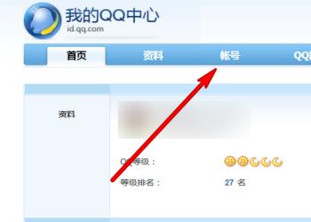 5. 第五步打开【我的QQ中心】页面后,根据下图箭头所指,点击【账号】选项。
