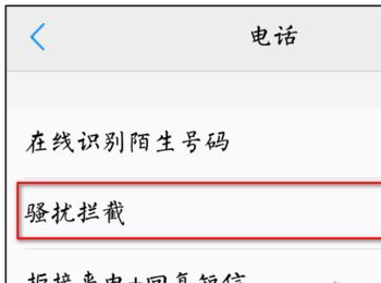 3. 第三步进入【电话】页面后,根据下图箭头所指,点击【骚扰拦截】选项。