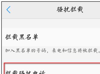 4. 第四步进入【骚扰拦截】页面后,根据下图箭头所指,点击【拦截骚扰电话】选项。