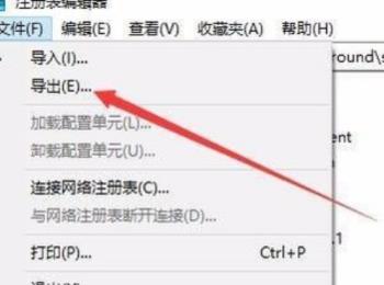 4. 第四步在弹出的菜单栏中,根据下图箭头所指,点击【导出】选项,按照需求将原注册表导出到指定目录。