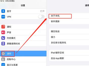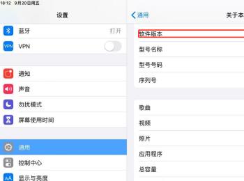 4. 在打开的关于本机页面,确认一下平板的系统是否为ipados或ios13,如果不是,我们需要将其升级到以上版本