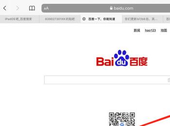 6. 如图,在打开的safari浏览器页面,使用手指从下轻轻上滑,调出工具栏,在打开的菜单中,再次选择safari图标,使用手指将其拖动到屏幕的侧边即可实现双开,如图。