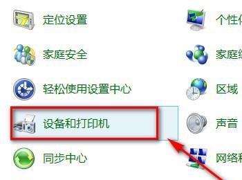 3. 第三步在【控制面板】窗口中,根据下图箭头所指,点击【设备和打印机】选项。