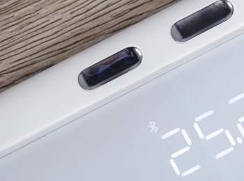 小米八电极体质秤,延续了米家一贯的极简白色调,正面为钢化玻璃材质,简约时尚,边缘采用了圆弧包边,防止使用过程中磕碰。中间金属质感的磨砂银色标识,很舒服。屏幕依旧采用了隐藏式的设计,平常几乎看不到,只有上秤激活后才能发现。