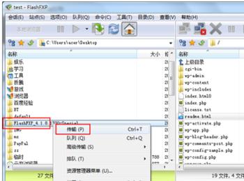 上传手机网站源码:使用FTP工具上传第一步获取的手机网站源码上传至虚拟主机,这里我使用的是国外的开源软件flashfxP。 1、点FlashFXP菜单栏“站点-站点管理”打开站点管理器。然后点新建站点,输入站点名称(随意),确定。 2、编辑站点管理器里新建的站点的相关信息,包括站点名称、地址、用户名称、密码等。编辑完成,点应用保存站点信息,点连接,FlashFXP开始连接FTP。 3、在左侧本地窗口选择文件或文件夹,右键-传输,即可把文件或文件夹上传到右侧的FTP服务器。操作简单。
