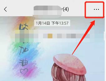 1. 首先第一步先打开微信群聊,接着根据下图箭头所指,点击右上角【…】图标。