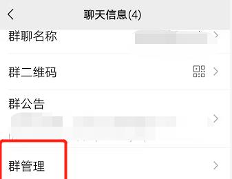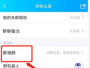 2. 第二步进入【群聊设置】页面后,根据下图箭头所指,点击【管理群】选项。