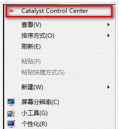 桌面上点击右键选择“Catalyst Control Center”(双显卡机型名称是“显示卡属性”)。