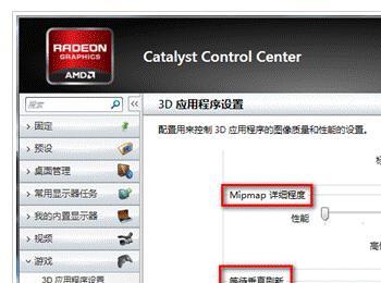 调节“Mipmap详细程度”和“消除混叠模式”侧重于“性能”。