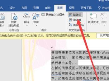 直接点击Word中的审阅菜单。 我们可以直接看到简繁转换的选项。