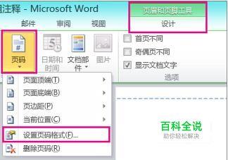 要更改编号样式,请在“页眉和页脚工具”下方的“设计”选项卡上,单击“页码”和“设置页码格式”。