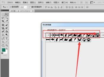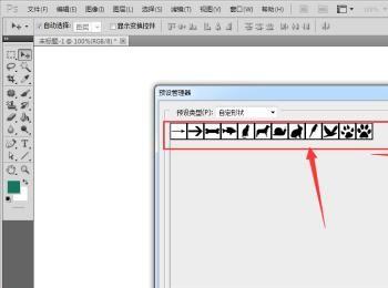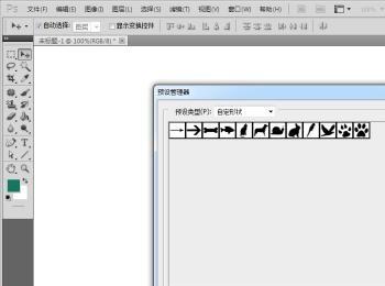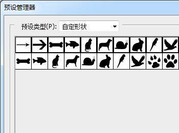 预设管理器,自定形状预设,看见没有,有两组一样的自定形状,那是我用来测试用的,如图所示: