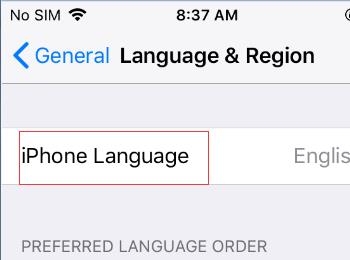 在”Language&Region”界面中,选择“iPhone Language”项。