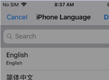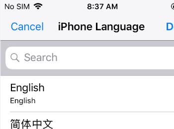 在”iPhone Language”页面,选择“简体中文”,然后点击右上角的”Done”按钮。