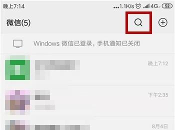 1. 首先第一步先打开手机中的【微信】App,接着根据下图所示,点击右上角【搜索】图标。