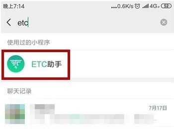 2. 第二步根据下图所示,搜索并点击【ETC助手】小程序。